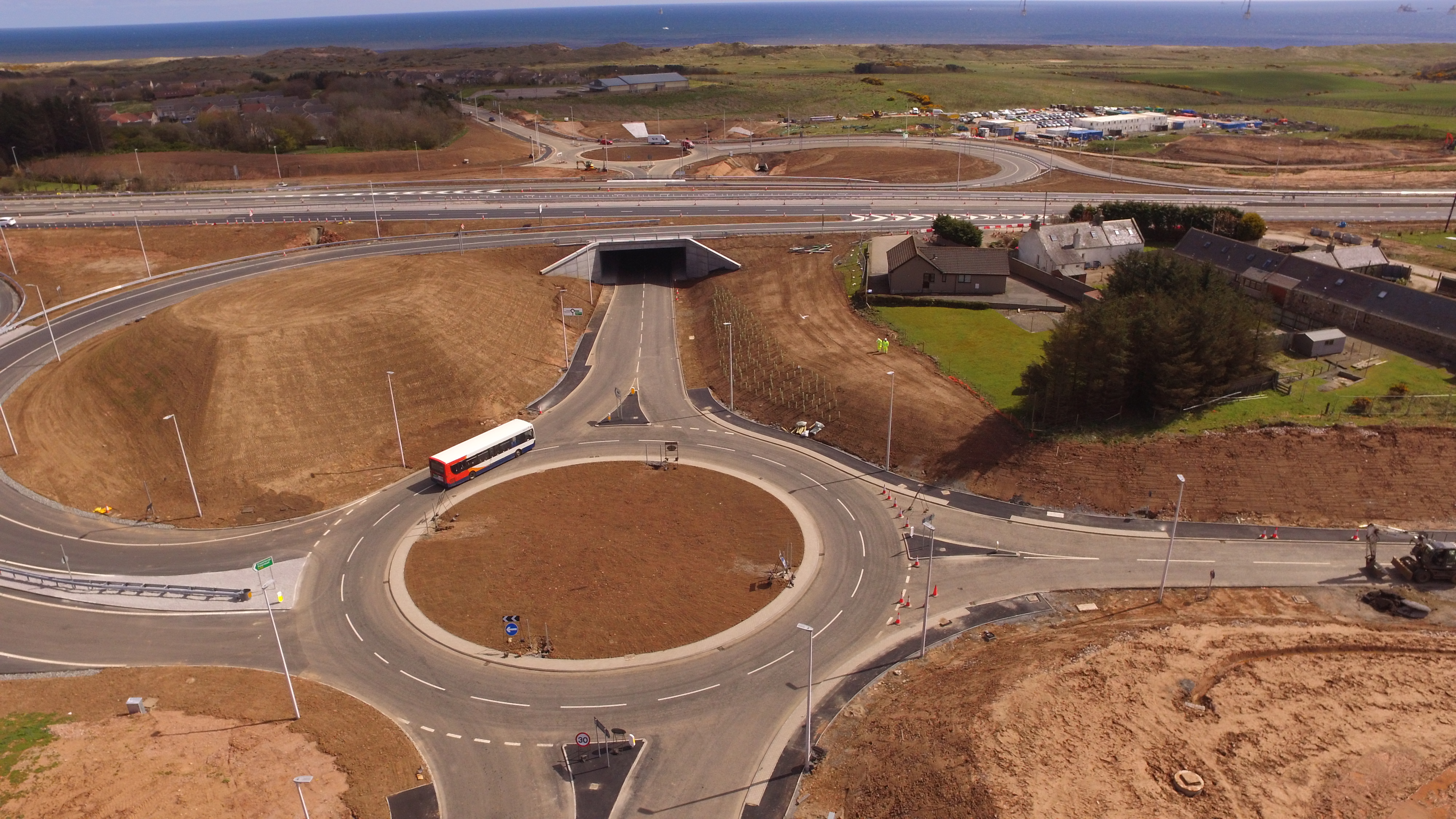 A new grade-separated junction at Balmedie has opened to traffic, improving access to the A90, Balmedie and the B977 Echt to Balmedie Road; and enhancing safety by removing the requirement to undertake right hand turns on this section of the trunk road.