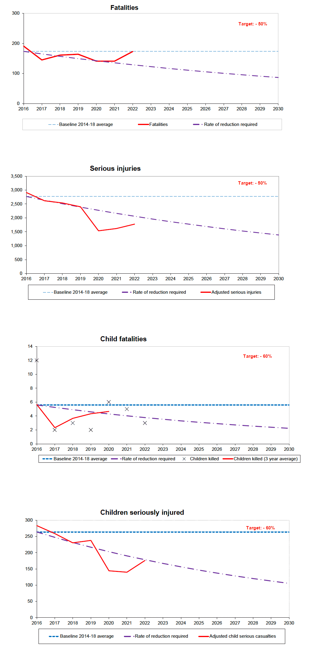 Figure 8a: Progress towards the 2030 casualty reduction targets