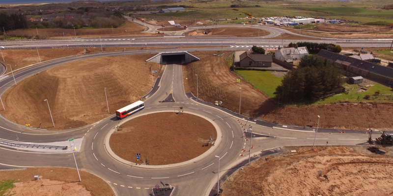 A new grade-separated junction at Balmedie has opened to traffic, improving access to the A90, Balmedie and the B977 Echt to Balmedie Road; and enhancing safety by removing the requirement to undertake right hand turns on this section of the trunk road.