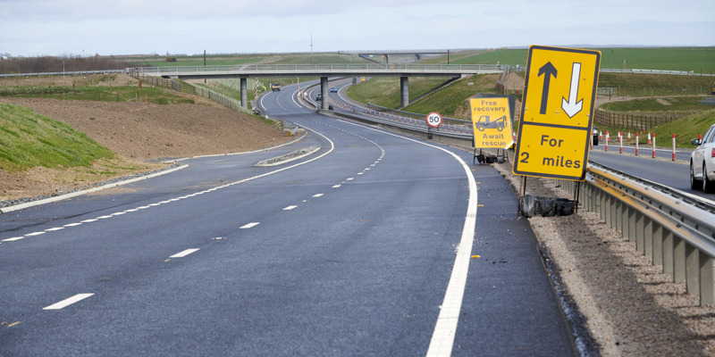This change to road layout is enabling the contractor to undertake the completion of the new southbound carriageway and connect the new side roads to the existing A90.